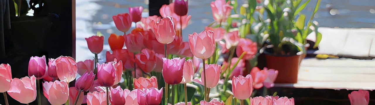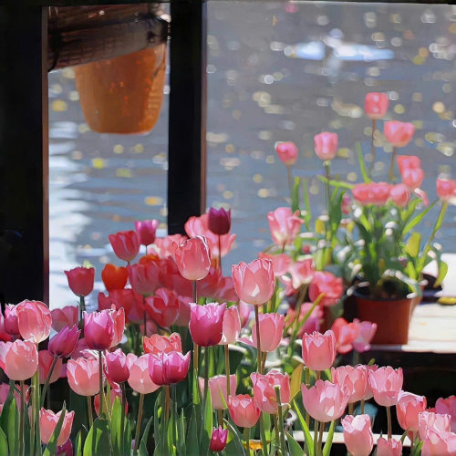 🏞️ Góc cầu gỗ nhỏ dẫn vào biển hoa